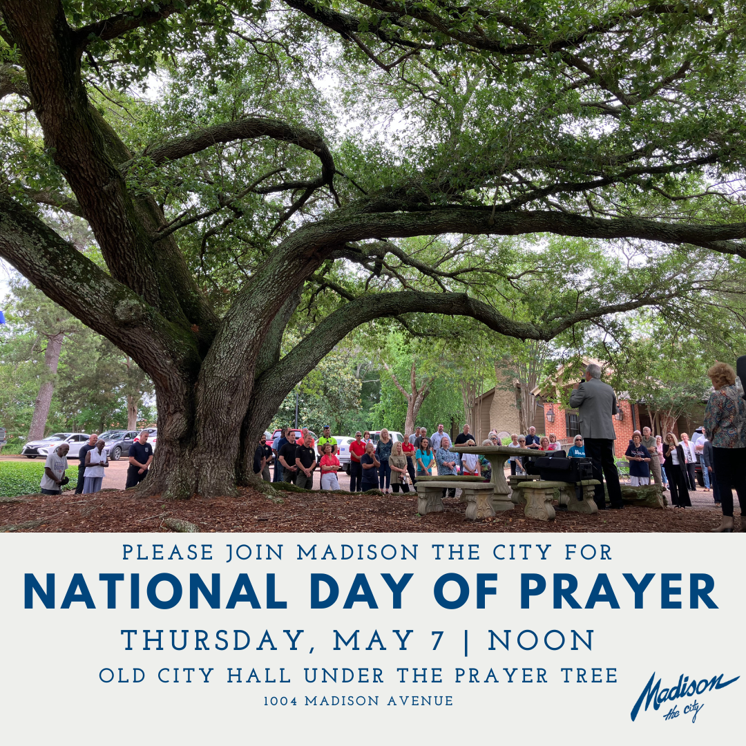 All are welcome to join us for a Prayer Service under the Prayer Tree at Old City Hall, 1004 Madison Avenue, at noon on May 7 as we observe National Day of Prayer.